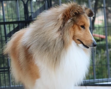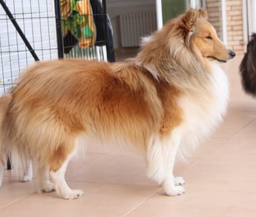 Simba llegó desde Rusia cumpliendo un sueño, convirtiéndose en nuestro primer perro importado. Cuando lo ves, su presencia enamora con su precioso color dorado, pero lo que realmente lo hace especial es su carácter: equilibrado, noble, sociable y lleno de ternura. Es, literalmente, un caramelo andante. Aunque ningún perro es perfecto —y él no es la excepción—, Simba encarna la esencia del temperamento que siempre hemos buscado en un Pastor de Shetland, alejándose del fenotipo del perro pastor tímido o inseguro.
